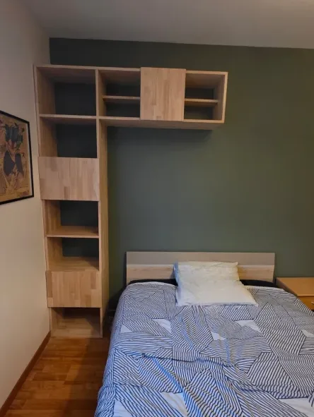 - Création de meubles sur mesure (bibliothèques, meubles TV, étagères, placards)